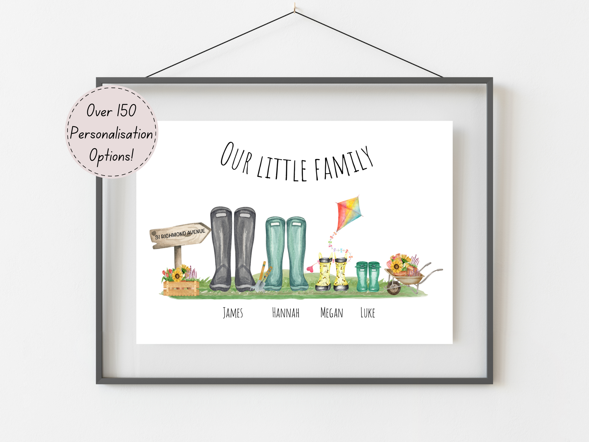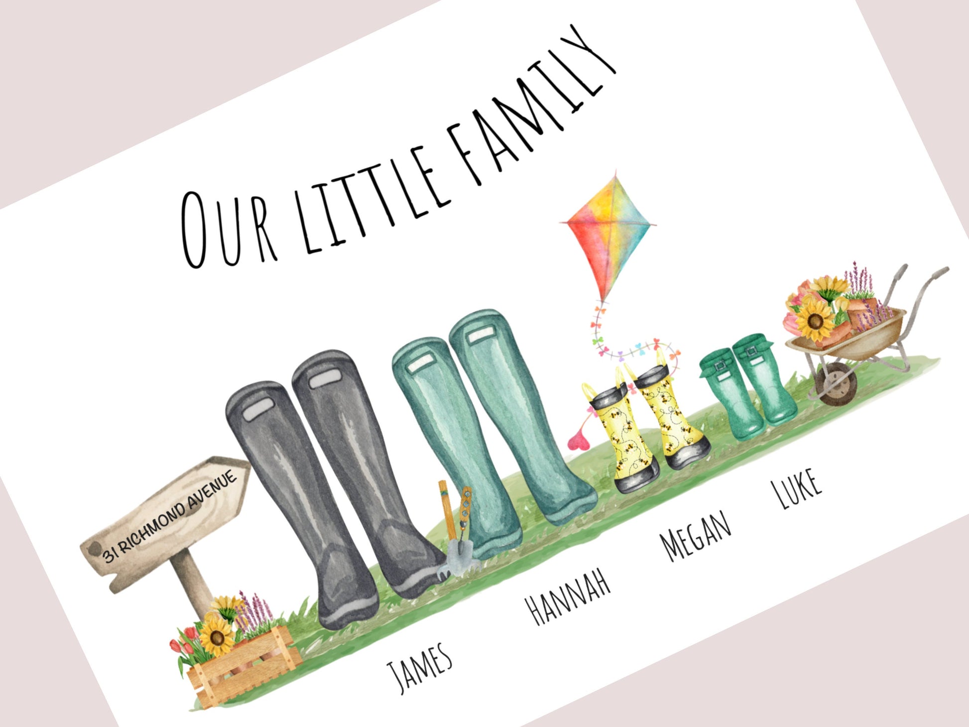 Personalised Family Print – Unique Family Gift Idea with Welly Boots