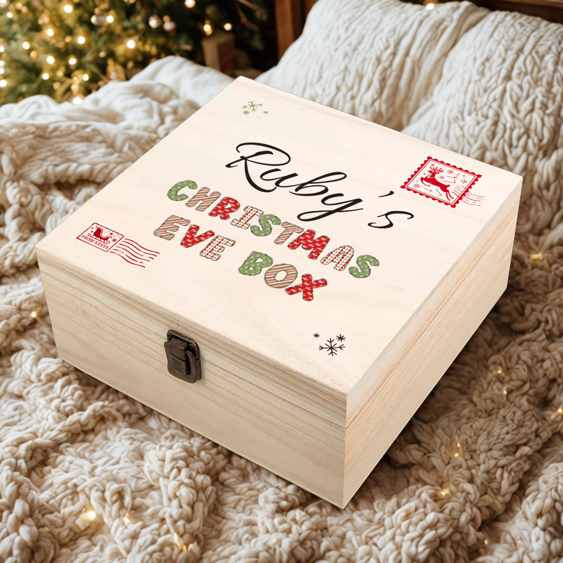Personalised Wooden Christmas Eve Box | Printed Name Keepsake Box