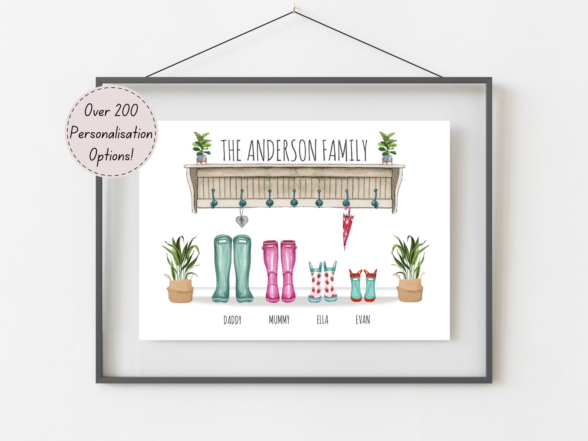 Gifts for Family – Personalised Welly Boot Print for Home Decor